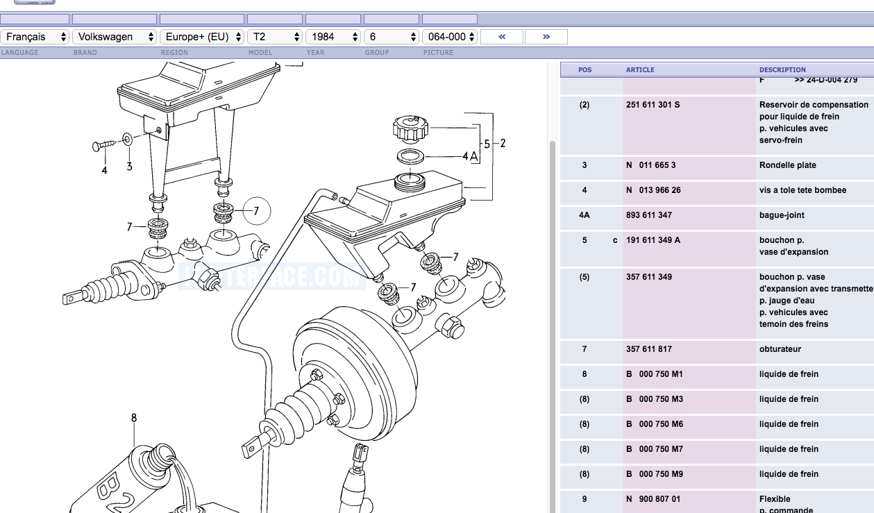 Je n'arrive pas à voir comment le bocal est fixé sur le maître cylindre... Y a certainement 1 ou 2 boulons planqués mais avant de ravager la planche de bord, s'il y avait un mode opératoire connu, ça me plairait bien... En tout cas, c'est bien les pièces N°7 sur le schéma et j'en ai trouvé au détail chez MT... Mais faut les poser ! Obturateur, je veux bien, mais c'est percé.... Comme un joint quoi...😂